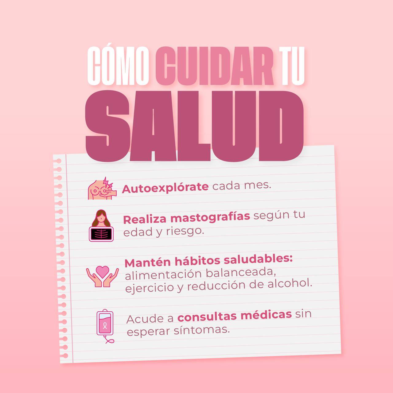 El cáncer de mama es una realidad que nos toca a todas: hijas, madres, hermanas, amigas. Tócate, conoce tu cuerpo, acude a tus revisiones médicas y mantente atenta a cualquier cambio. Hablar de prevención es hablar de vida, de esperanza y de futuro.