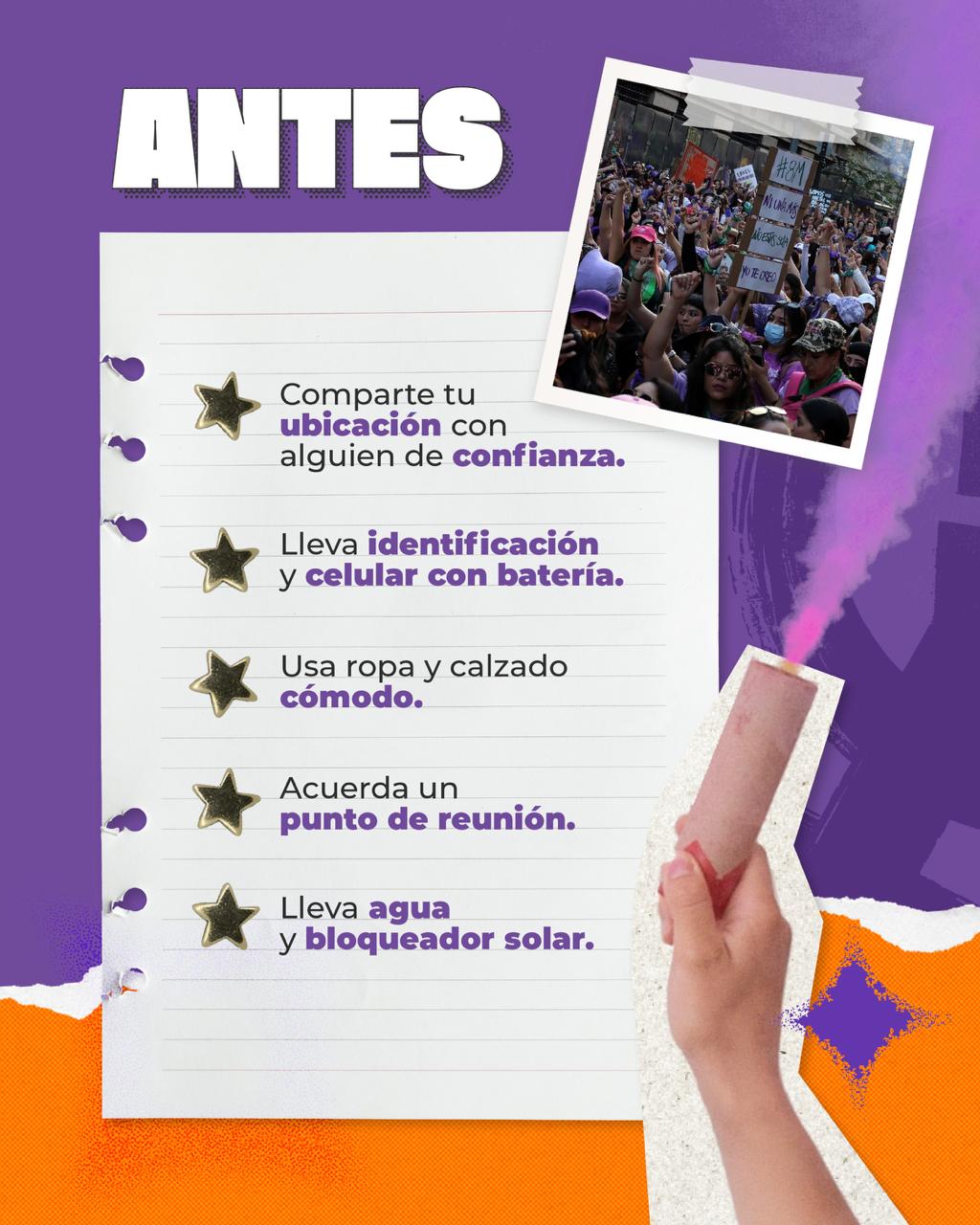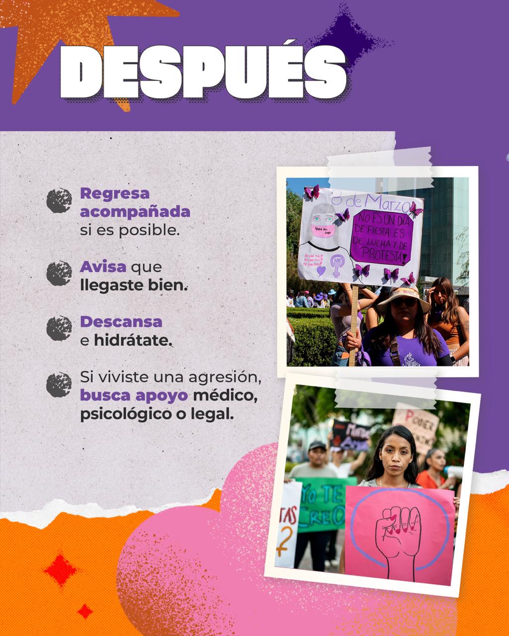 Desliza para conocer qué hacer antes, durante y después de la marcha y compártelo con más mujeres.